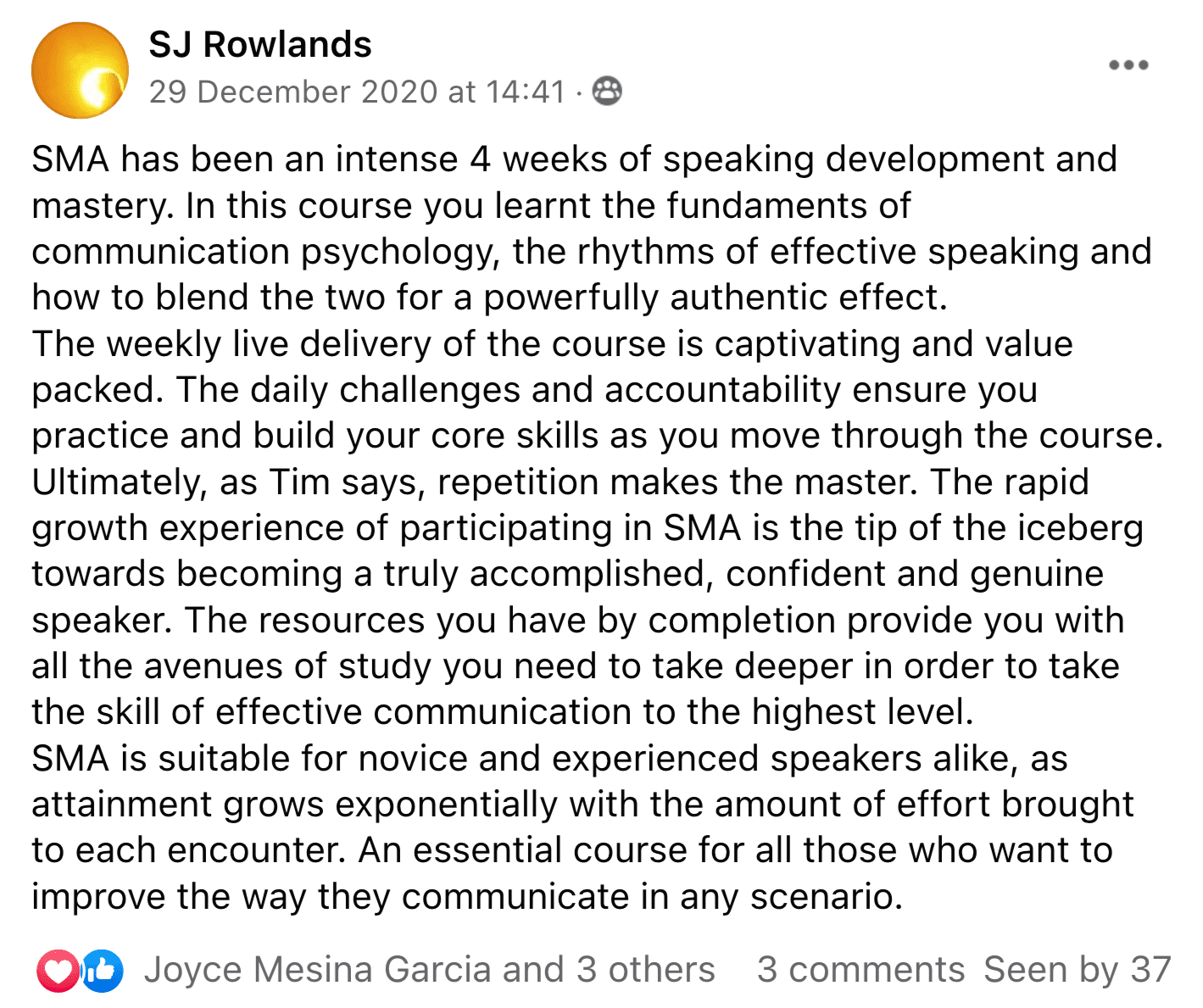 • Lifetime Access to SMA™ Speaking Mastery Accelerator Course: